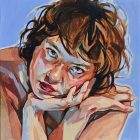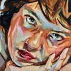 The warm tones and faceted brushstrokes bring a rich texture that contrasts with the apparent stillness of the portrait. Each stroke seeks to convey the tension between the figure’s introspection and her subtle confrontation towards the observer. This piece is not only a reflection of contained emotion, but also an invitation to connect with that moment when gazes speak louder than words.
