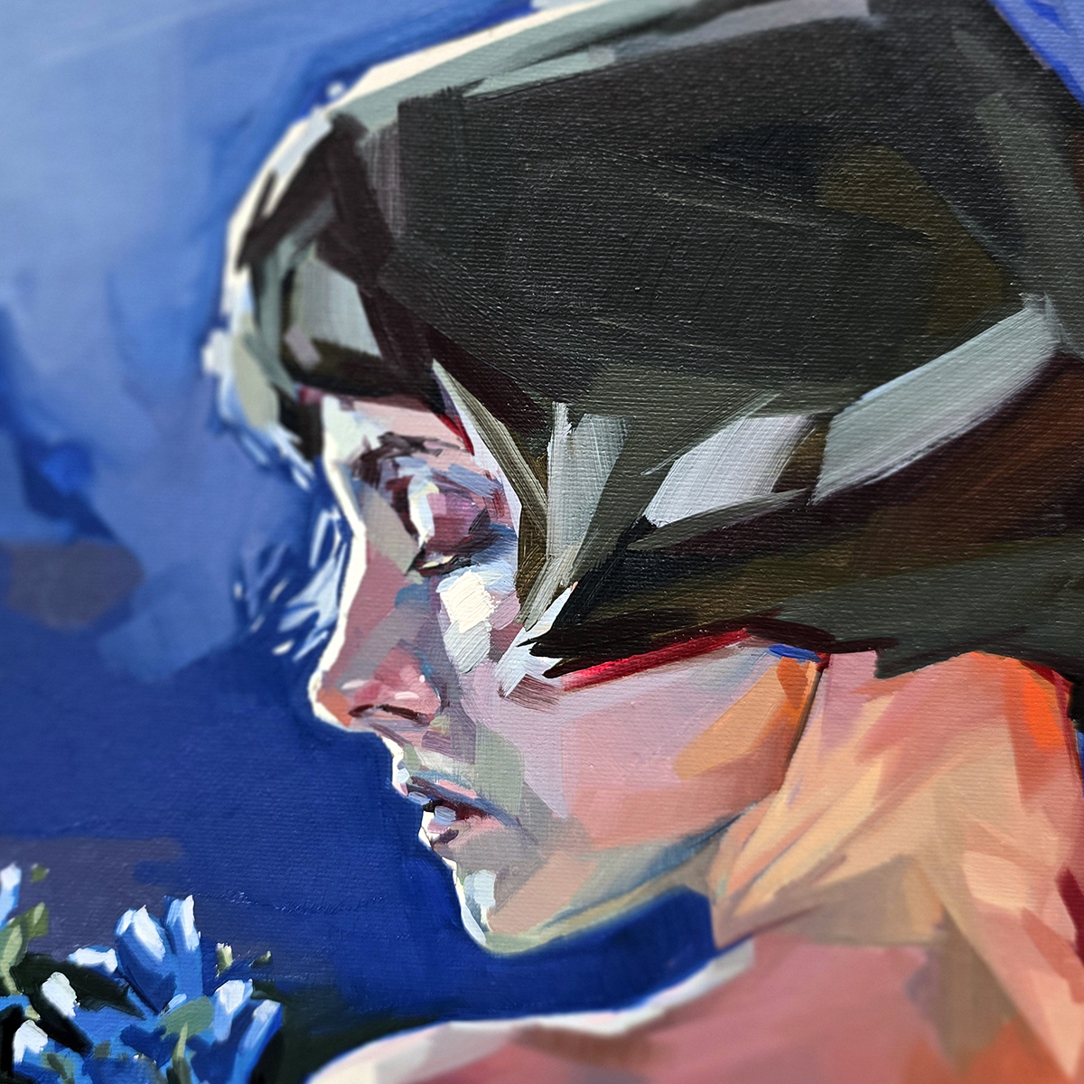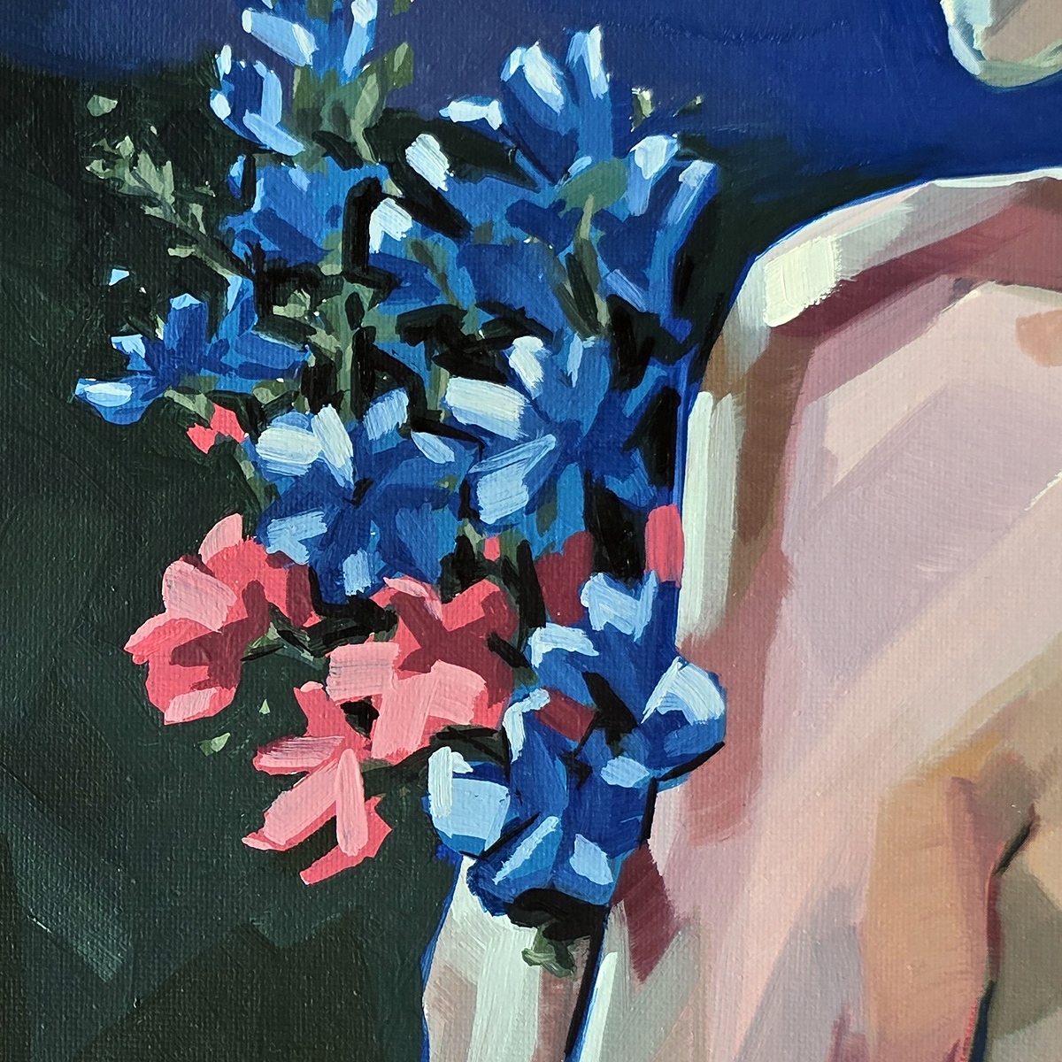 Backlit by Flowers and Neon. Oil on canvas. 30 x 30 cm. 2025