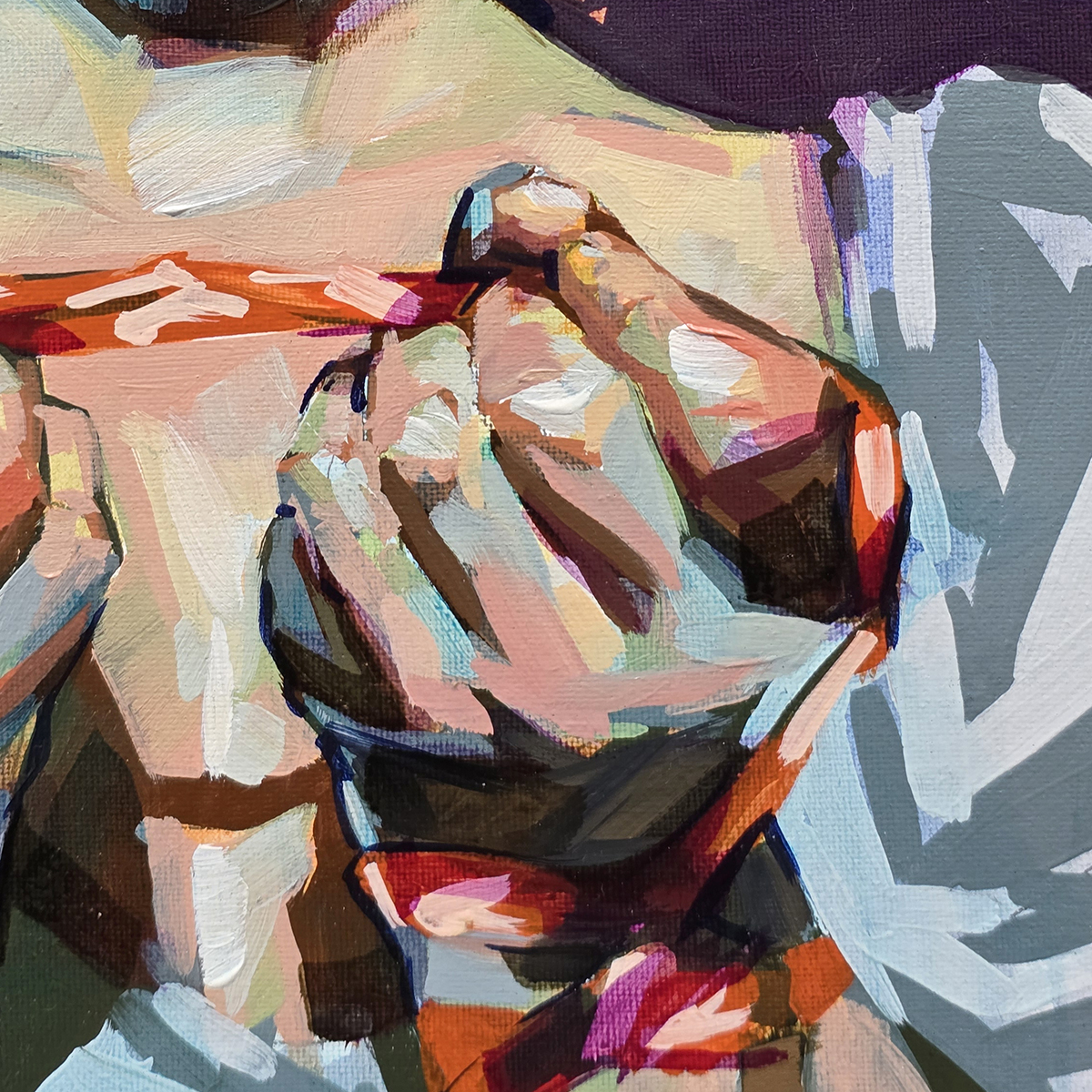 It’s a small, square work, but it carries a strong vibration. If you’re drawn to the human figure and the quiet stories within a single gesture, maybe this painting is for you too.